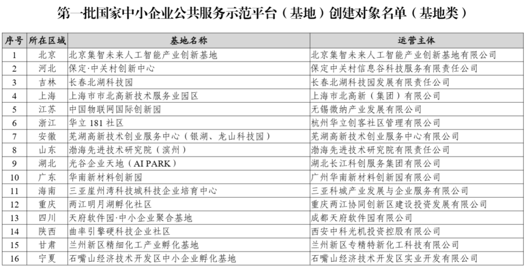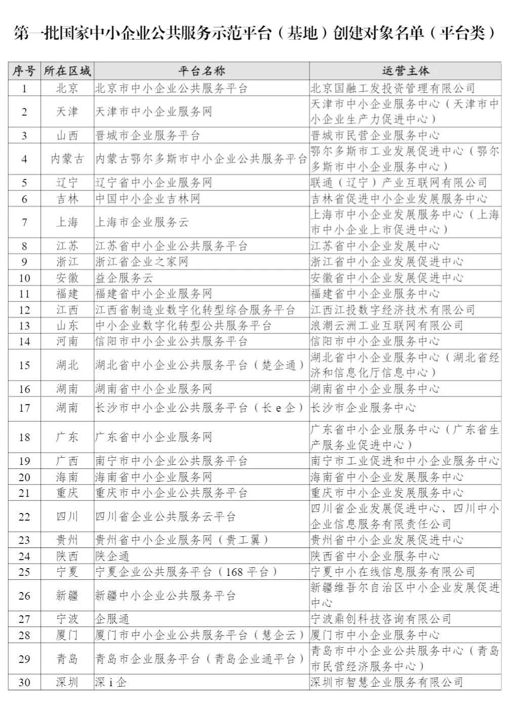 关于公布第一批国家中小企业公共服务示范平台(基地)创建对象名单的通知